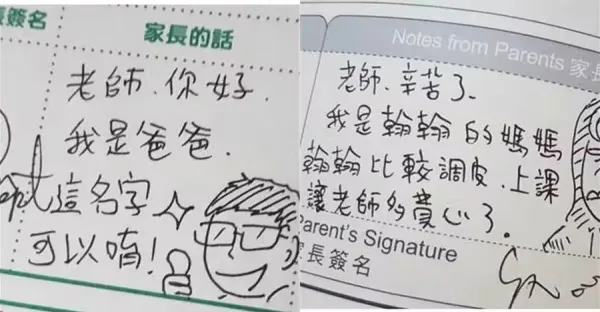 調皮老爸簽聯絡簿「用自畫像撩老師」!翻開下一頁「老婆直接被出賣」網笑翻:「爸爸應該已經被媽媽揍到18層地獄了吧!」