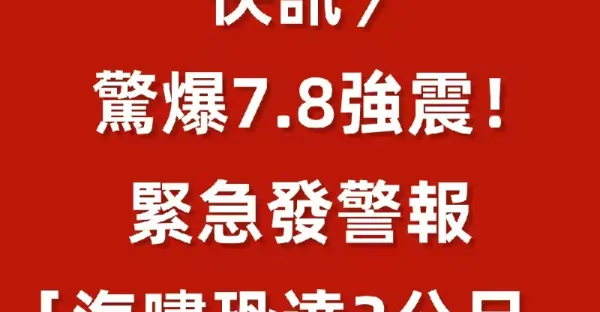 快訊/驚爆7.8強震!緊急發警報「海嘯恐達3米」