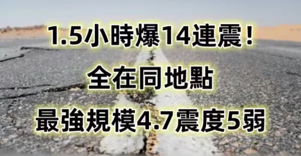 快訊/1.5小時爆14連震!全在同地點 最強規模4.7、震度5弱...