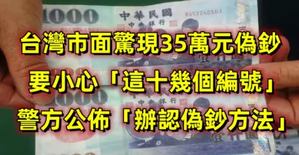 台灣市面驚現35萬元偽鈔,要小心「這十幾個編號」!警方公布「辦認偽鈔方法」