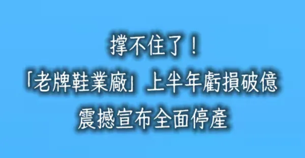 撐不住了!「老牌鞋業廠」上半年虧損破億 震撼宣布全面停產