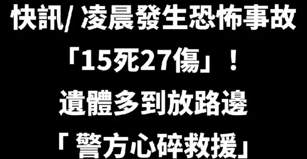 快訊/凌晨發生恐怖事故「15死27傷」!遺體多到放路邊 「 警方心碎救援」