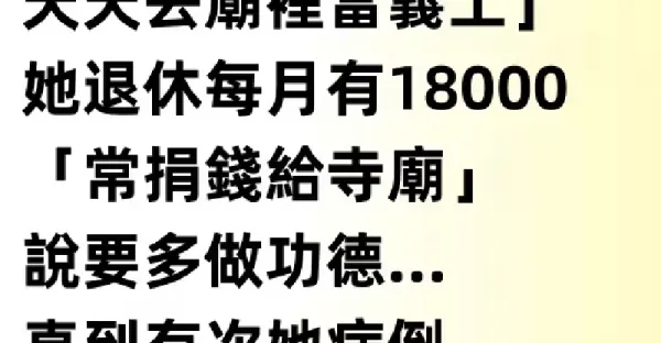 爸爸心梗走了!媽媽從此信佛更虔誠「退休後天天去廟裡當義工」,她退休每月有18000「常捐錢給寺廟」說要多做功德… 直到有次她病倒「付醫藥費時我一看她的帳戶」 當場腿軟了