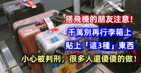 搭飛機的朋友注意!千萬別再行李箱上貼上「這3種」東西,小心被判刑,很多人還傻傻的做!