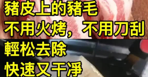 豬皮上的豬毛不用火烤,不用刀刮,輕鬆去除快速又乾淨,告知家人