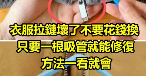 衣服拉鏈壞了不要花錢換,只要一根吸管就能修復,方法一看就會!