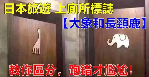 日本旅遊,上廁版就能看到「大象和長勁鹿」的分別!跑錯才尷尬