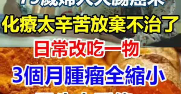 79歲婦人大腸癌末!化療太辛苦「放棄不治了」日常改吃一物「3個月腫瘤全縮小」醫生也看傻