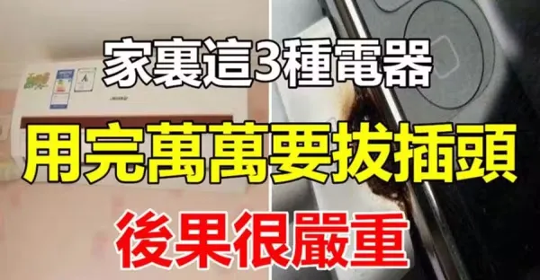 家裡3種電器,用完萬萬要拔插頭,不要拿生命開玩笑,每月還省不少電費!!