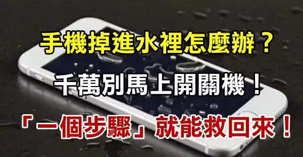 手機掉進水裡怎麼辦?千萬別關機!只要「一個步驟」就能救回來!活了半輩子都不知道!