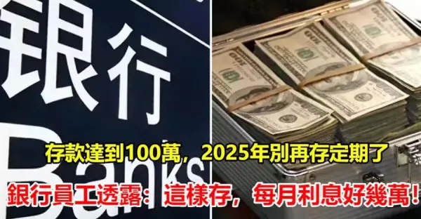 存款達到100萬,2025年別再存定期了!銀行員工透露:這樣存,每月利息好幾萬