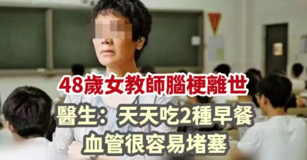 48歲女教師腦梗離世,醫生:天天吃2種早餐,血管很容易堵塞