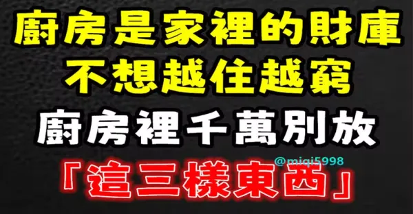 廚房是家裡的財庫!不想越住越窮「廚房裡千萬別放」這三樣東西 隨便中一樣「再富裕」也會越住也窮