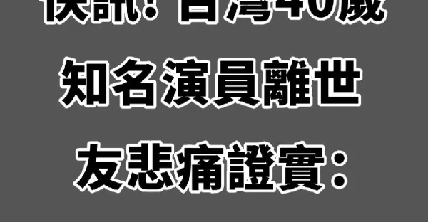 快訊/台灣40歲知名演員離世❗ 友悲痛證實:「在家中走的...」