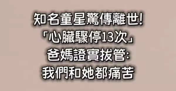 快訊/知名童星驚傳離世!「心臟驟停13次...」爸媽證實拔管:我們和她都痛苦