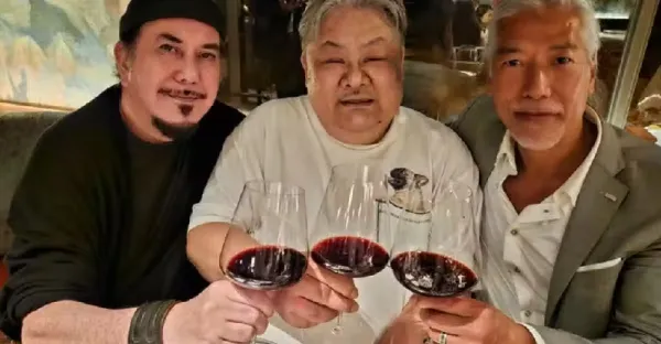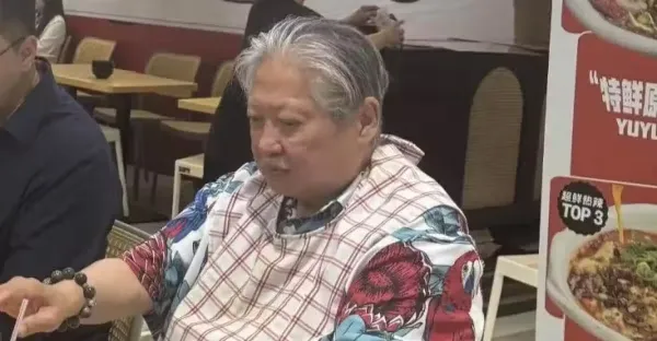 萬梓良中山品嘗燕窩,頭髮眉毛全白,疑戴假牙抽100元一包的香煙