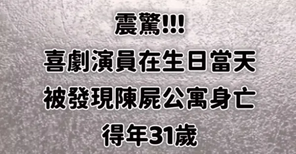 震驚!!!喜劇演員,在生日當天被發現陳屍公寓身.亡,得年31歲
