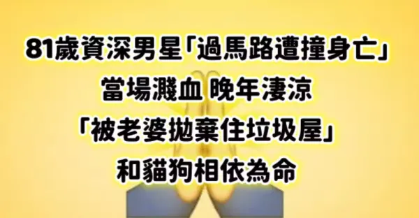 81歲資深男星「過馬路遭撞身亡」當場濺血 晚年淒涼「被老婆拋棄、住垃圾屋」和貓狗相依為命