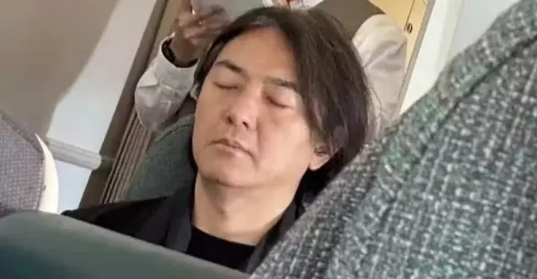 58歲鄭伊健坐飛機出行,低調坐經濟艙,臉腫頭髮少,看起來好蒼老
