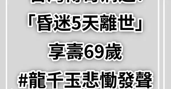 台灣傳奇病逝!驚傳「昏迷5天離世」享壽69歲 #龍千玉悲慟發聲........