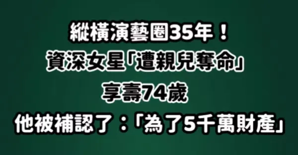 縱橫演藝圈35年!資深女星「遭親兒奪命」享壽74歲 他被補認了:「為了5千萬財產」