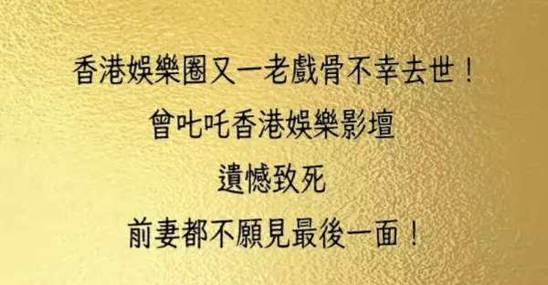 香港娛樂圈又一老戲骨不幸去世 曾叱吒香港娛樂影壇!遺憾致死,前妻都不願見最後一面!