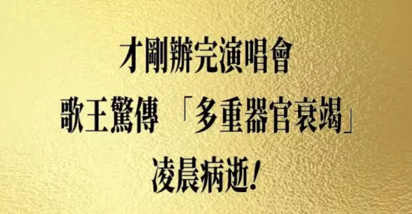 才剛辦完演唱會 歌王驚傳「多重器官衰竭」凌晨病逝!