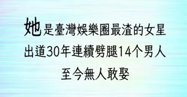 她是台灣娛樂圈最渣的女星,出道30年連續劈腿14個男人,至今無人敢娶!
