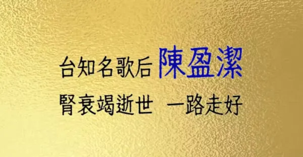 台知名歌后陳盈潔, 腎衰竭 逝世: 一路走好
