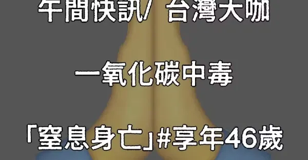午間快訊/台灣大咖 一氧化碳中毒「窒息身亡」#享年46歲