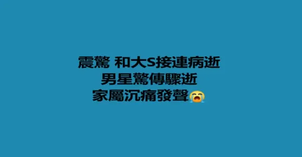 震驚!和大S接連病逝 男星驚傳驟逝 家屬沉痛發聲!