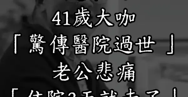 又是甲流!41歲大咖「驚傳醫院過世 」...老公悲痛「住院3天就走了」!