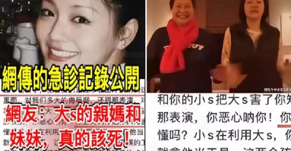 「急診記錄被公開」,網友:大s的親媽和妹妹,真的該s