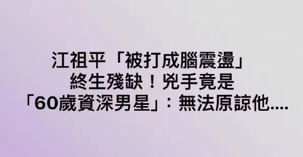 江祖平「被打成腦震盪」終生殘缺!兇手竟是「60歲資深男星」:無法原諒他....