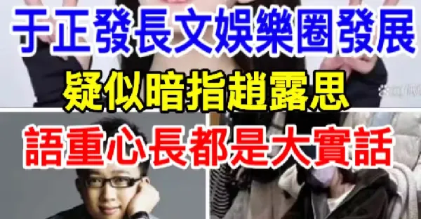 於正髮長文談娛樂圈發展,疑暗指趙露思,語重心長都是大實話