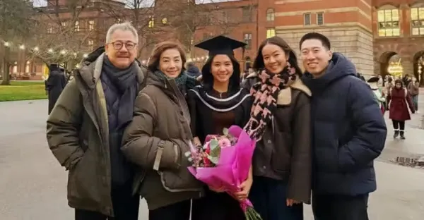 毛舜筠次女碩士畢業,全家齊聚英國慶祝,79歲丈夫滿頭白髮好慈祥