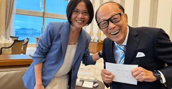 96歲李嘉誠和女友一同接見貴客,周凱旋似女主人般盤腿和客人聊天