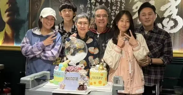 姜大衛吻賀李琳琳76歲大壽!女婿曹永廉攜16歲外孫到場,顏值驚人