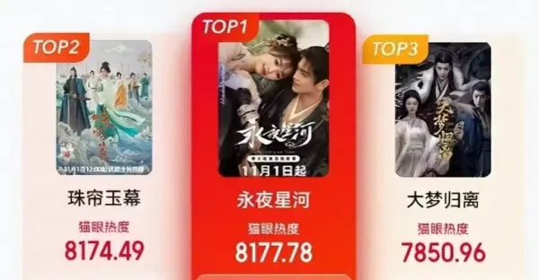 目前熱門的10部影視劇,《永夜星河》第一,《珠簾玉幕》,緊隨其後