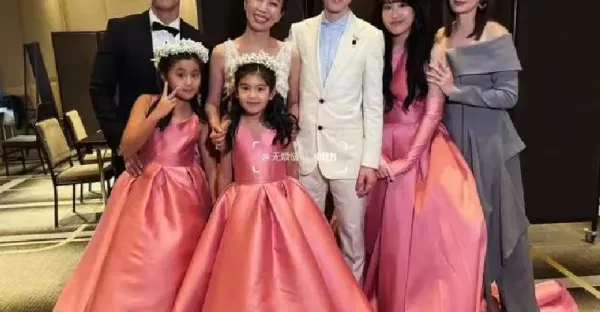 賈靜雯一家參加蕭敬騰婚禮,三朵金花都好美,二女兒咘咘最像媽媽