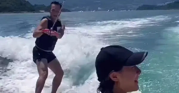 61歲張兆輝衝浪一身腱子肉壯如牛!秀麒麟臂與樹根腿,愛女忙欣賞
