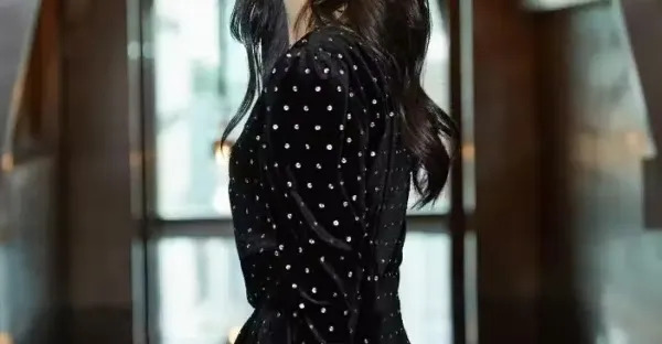 譚松韻徹底改變了,,身穿黑色滿天星連衣裙大秀少婦風姿!