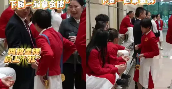 拿捏!全紅嬋肩扛2金牌參加廣東表彰會,將金牌借給11歲鄭好好沾沾喜氣
