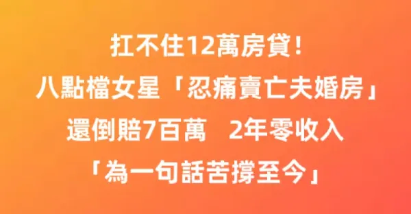 扛不住12萬房貸!八點檔女星「忍痛賣亡夫婚房...」還倒賠7百萬 2年零收入「為一句話苦撐至今」