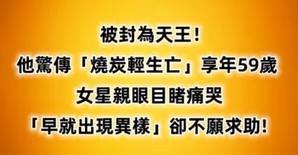 被封為天王!他驚傳「燒炭輕生亡」享年59歲 女星親眼目睹痛哭「早就出現異樣...」:卻不願求助!