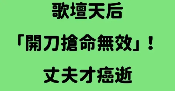 緊急/歌壇天后「開刀搶命無效」!丈夫才癌逝「她也跟著走了」...