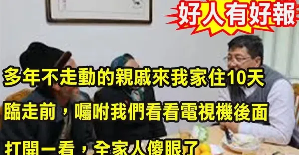 多年不走動的親戚來我家住10天,臨走前,囑咐我們看看電視機後面 ,打開一看,全家人傻眼了