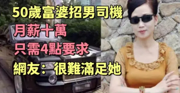 50歲富婆招男司機,月薪十萬隻需4個要求,網友:很難滿足她