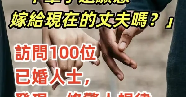 「下輩子你還願意嫁給現在的丈夫嗎?」採訪100位已婚人士,發現一條驚人規律……