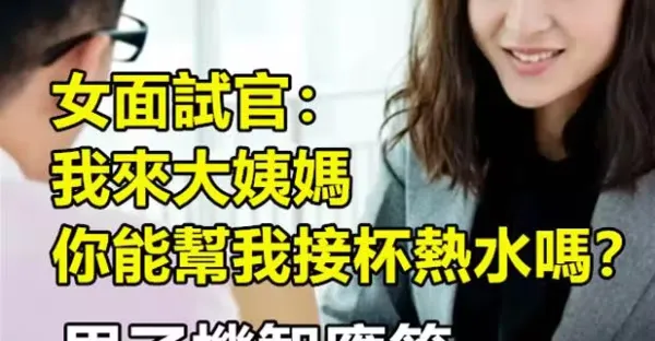 女面試官: 我來大姨媽,你能幫我接杯熱水嗎?男子「機智應答」竟被當場錄用